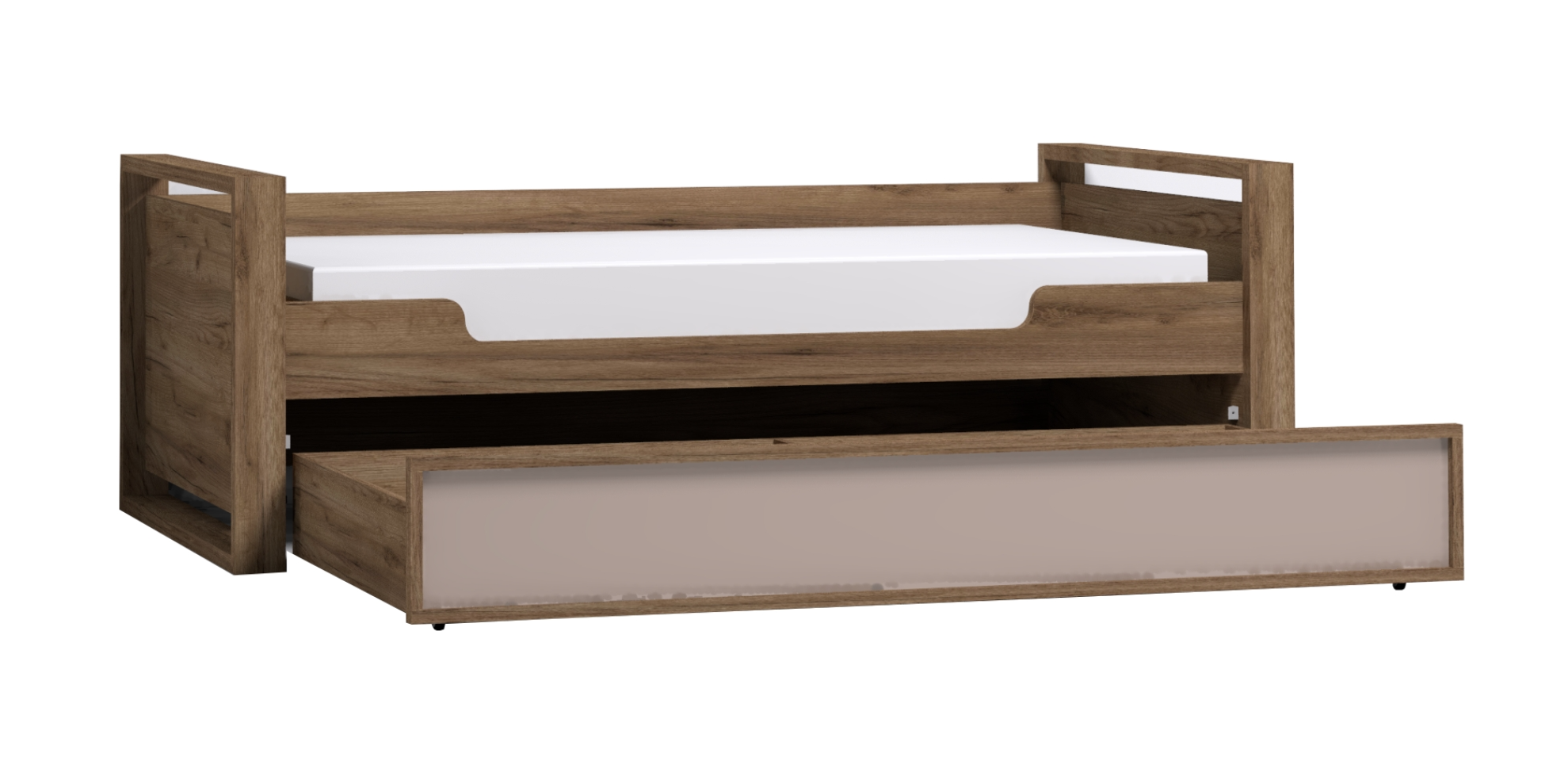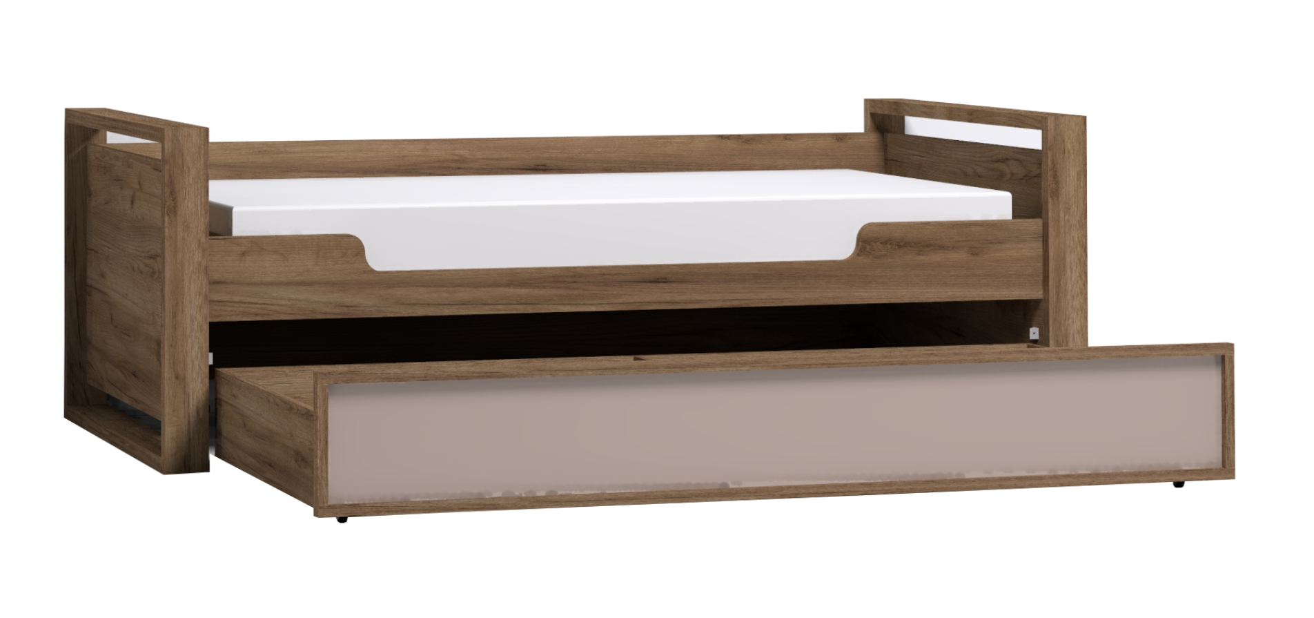 Мебель из коллекции Nature создана для современной молодежи. Детская или подростковая кровать-тахта с большим ящиком глубиной 182 мм на выкатных роликах. Его можно использовать как место для хранения постельного белья или как дополнительное спальное место.