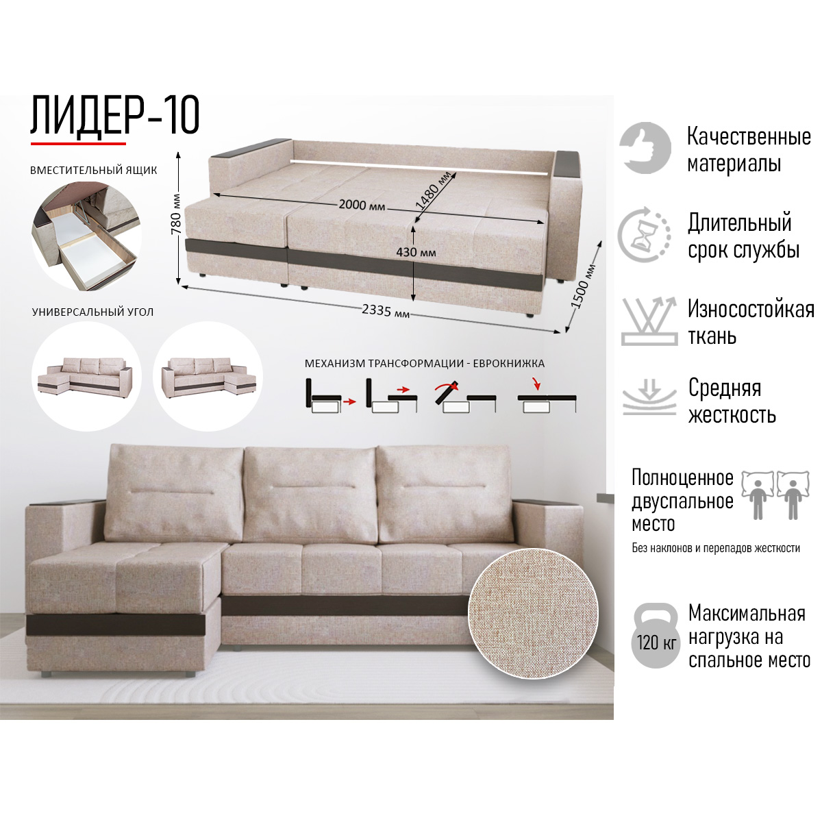 "Лидер 10"  - универсальный компактный угловой диван.