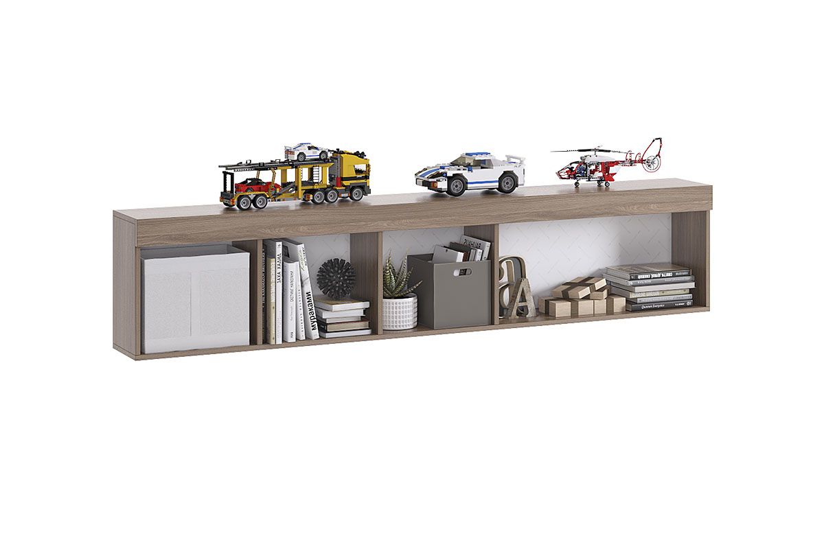 Стильная навесная полка «Челси» – мечта каждого мальчика. В закрытые шкафы и открытые ниши поместятся все учебники книги и сувениры. Эффектный принтерный рисунок на фасадах выдержан в общем стилистическом решении. Рисунок устойчив к истиранию и ультрафиолету. Детская «Челси»- все, что нужно для истинного джентльмена!