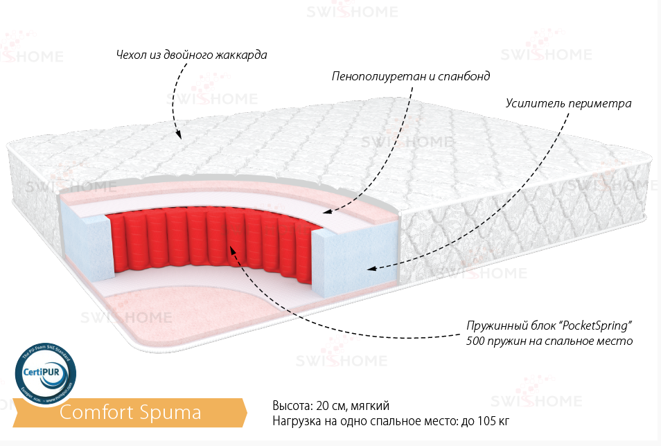 Матрас "Комфорт Спума" гарантирует сон, словно на мягкой перине.