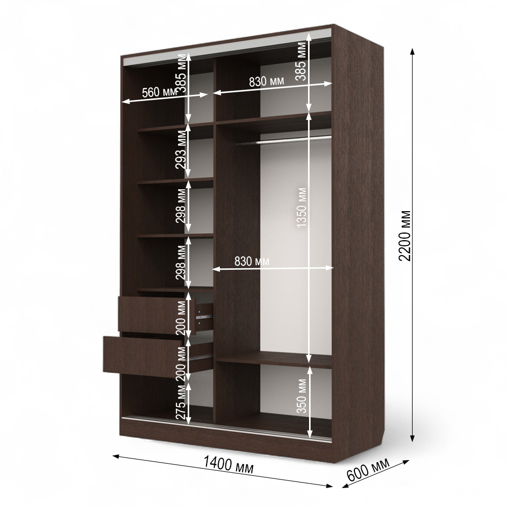 Шкаф-купе Клэр 140х597х220 с ящиками венге
