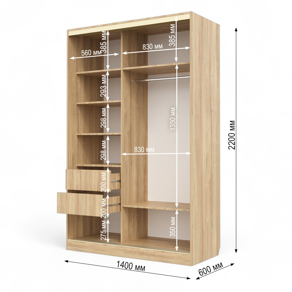 Внутри шкафа вас ждут два удобных выдвижных ящика и вместительная штанга для одежды.